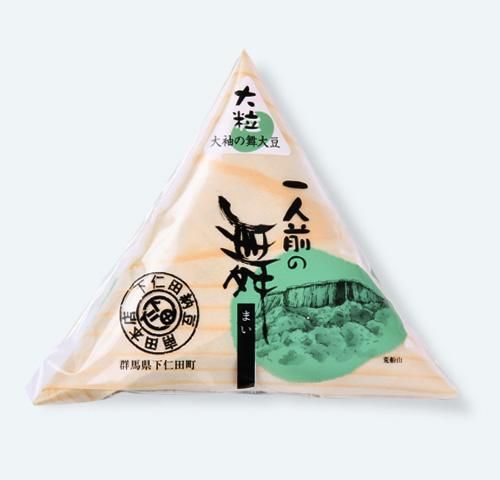 「一人前の舞」に使用している大豆は、北海道産大粒大豆100%使用。ふっくら上品な甘みが特徴で、枝豆にも使われる大豆の品種です。内容量は50gで1食分個包装になっています。 タレ、からしなどは付いてませんので、お好みでお召し上がりください。